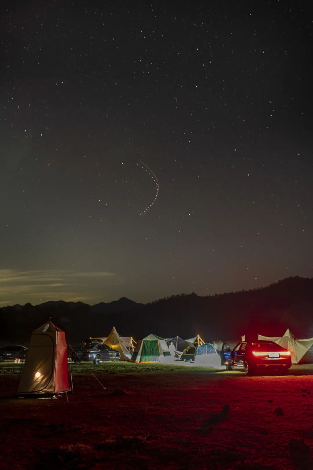 夜幕笼罩下,篝火化成繁星,帐篷变成了“观星圣地”。草原上的灯火点点,与夜空中的星光交相辉映,借着水气,草原上弥漫起朦胧的星光,像是升腾起来的一片淡淡的银雾。天为幕,地为席,旷野之下,大家彼此诉说衷肠,或短暂,或永恒,在各自的生命旅程中留下共同美好的记忆。