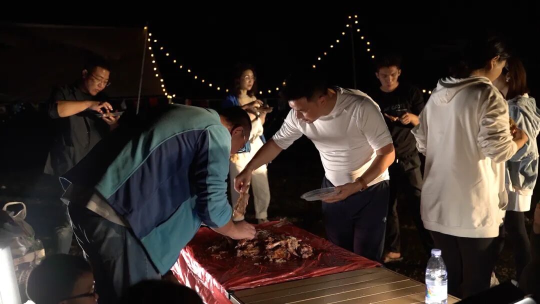 当星辰悄悄爬满夜空,水库边的狂欢夜也就开始了,篝火酒会、烤全羊、BBQ、户外KTV、户外观影...在浩渺星空下对酒当歌,熊熊篝火旁踏歌起舞,精心准备的餐食,色香味俱全。酒过三巡微醺时,在星火的点缀映衬下,更添浪漫氛围。